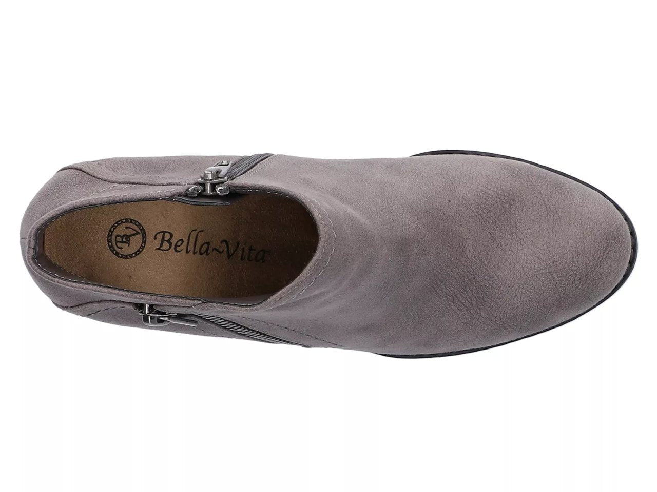 Step out in style and comfort with the Bella Vita Bobbi Comfort Booti. These grey boots are perfect for any occasion, from a night out to a day at the office. With a wide fit and plush cushioning, you'll never want to take them off. Available in size 8.5W.