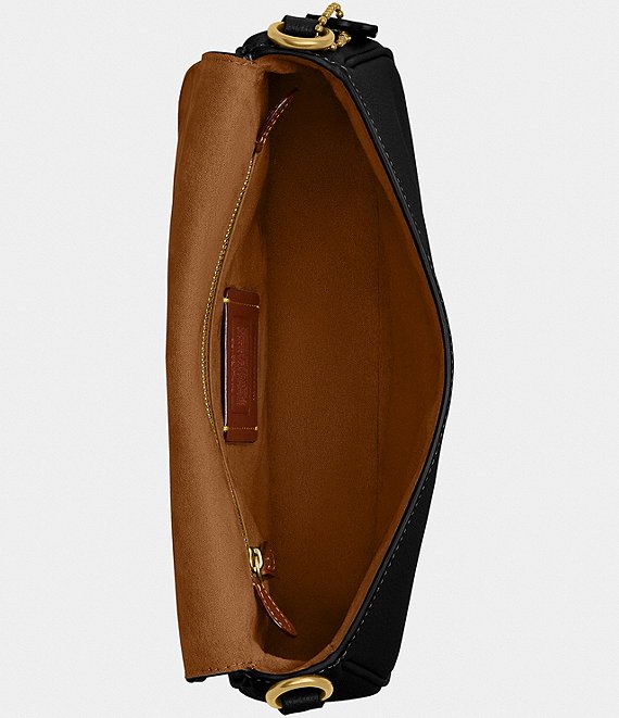 Features Small sized bag; 10"W x 7-1/4"H x 2-3/4"D (width is measured across the bottom of handbag); 1.32 lbs. approx. weight Silhouette is based off 5'9" model 7-1/2" L removable short strap; 21-1/2" L removable crossbody strap Snap closure Brass-tone exterior hardware, open pocket; interior zip pocket Leather Spot clean