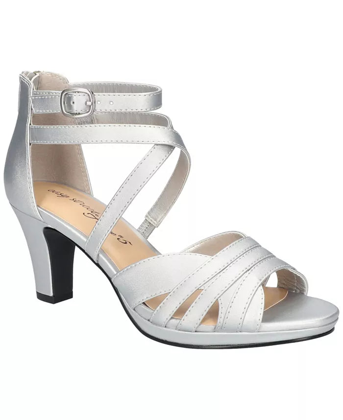 Easy Street Womens Crissa Dre Silver Satin 6.5M