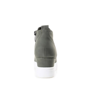 The Clara sneaker by Journee blends style and comfort seamlessly with its athleisure design and round-toe silhouette. Featuring a stretch detail at the vamp and perforated details, these sneakers offer both flexibility and a trendy aesthetic. The inside zipper, padded insole, and a 2 1/2 Inch wedge heel, coupled with faux leather uppers, make the Clara sneaker a versatile and fashionable choice for casual and active pursuits.