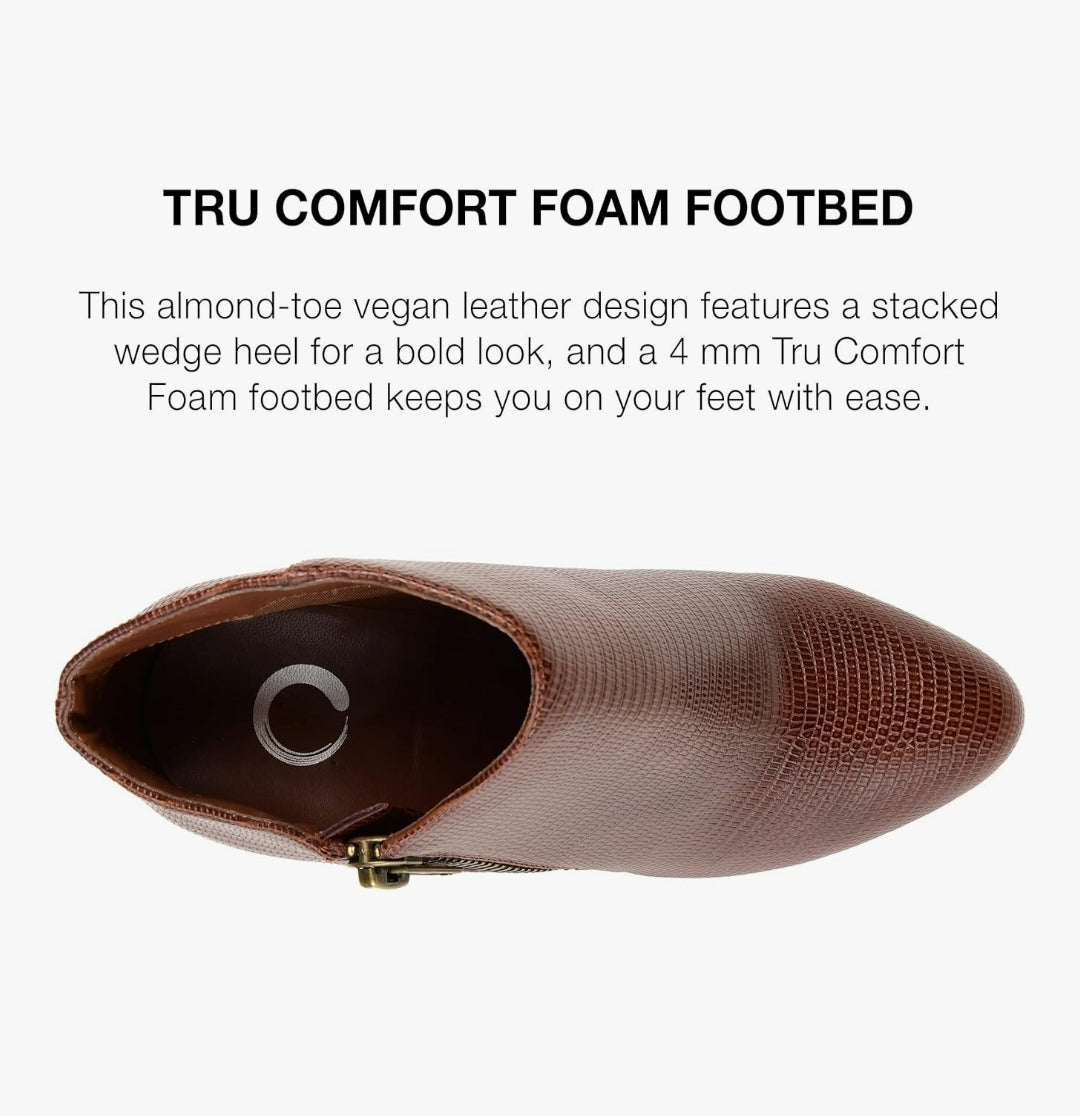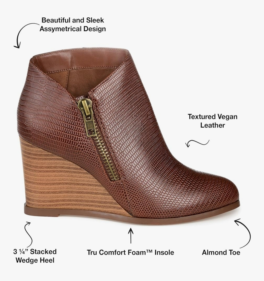 Elevate your style with the glamorous Journee Collection Womens Glam Brown 8M bootie! Featuring a low cut ankle and exposed zipper, this bootie not only adds a touch of sophistication, but also elongates your legs for a flattering and confident look. Step out in style and make a statement with these chic boots!
