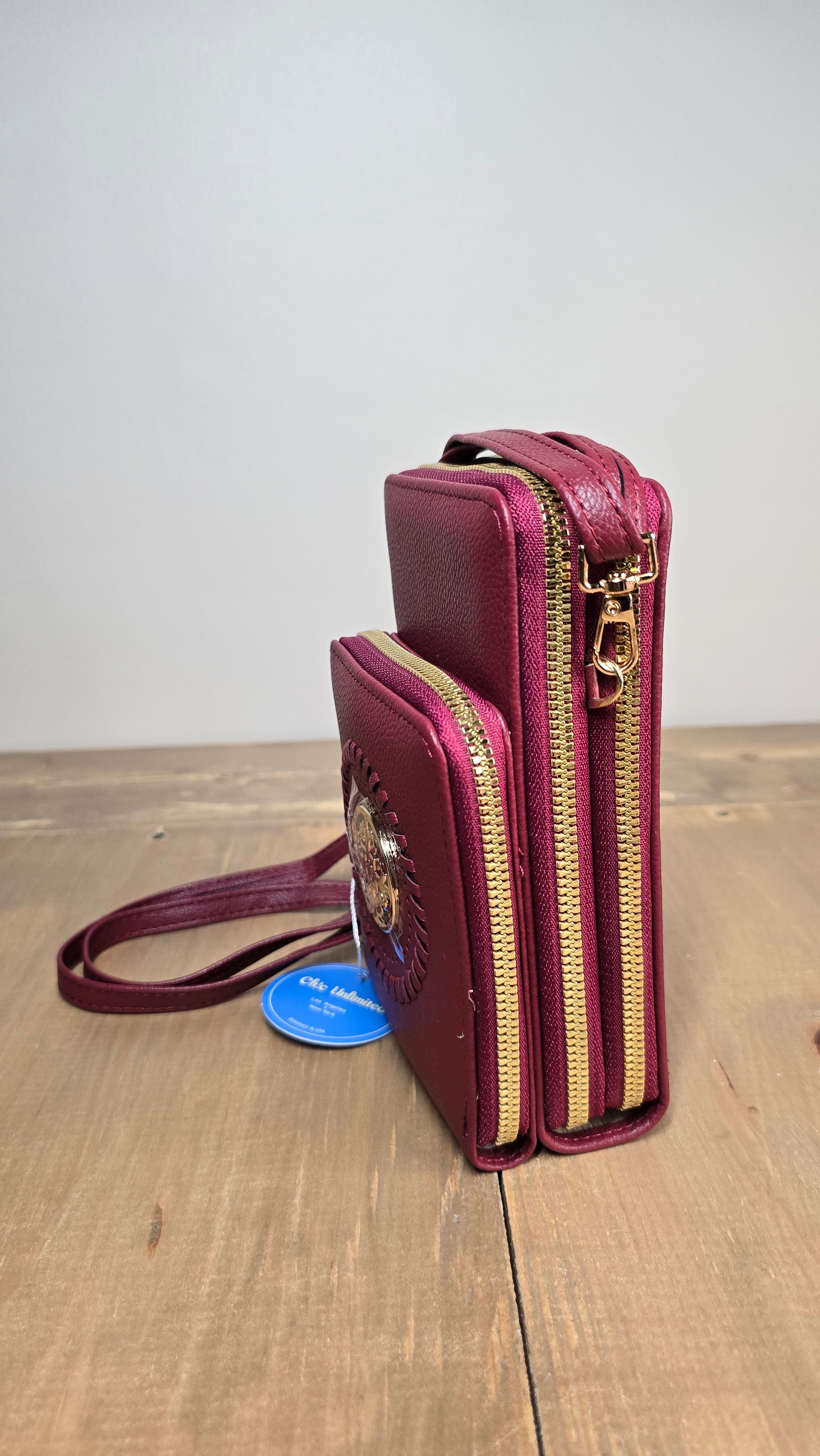 The Chic Unlimited crossbody is a stylish and functional accessory. Its crossbody design makes it convenient to take on-the-go, while the phone wallet feature keeps your phone secure and easily accessible. The gold medallion adds a touch of elegance to the overall design. Perfect for the fashion-forward and practical individual.
